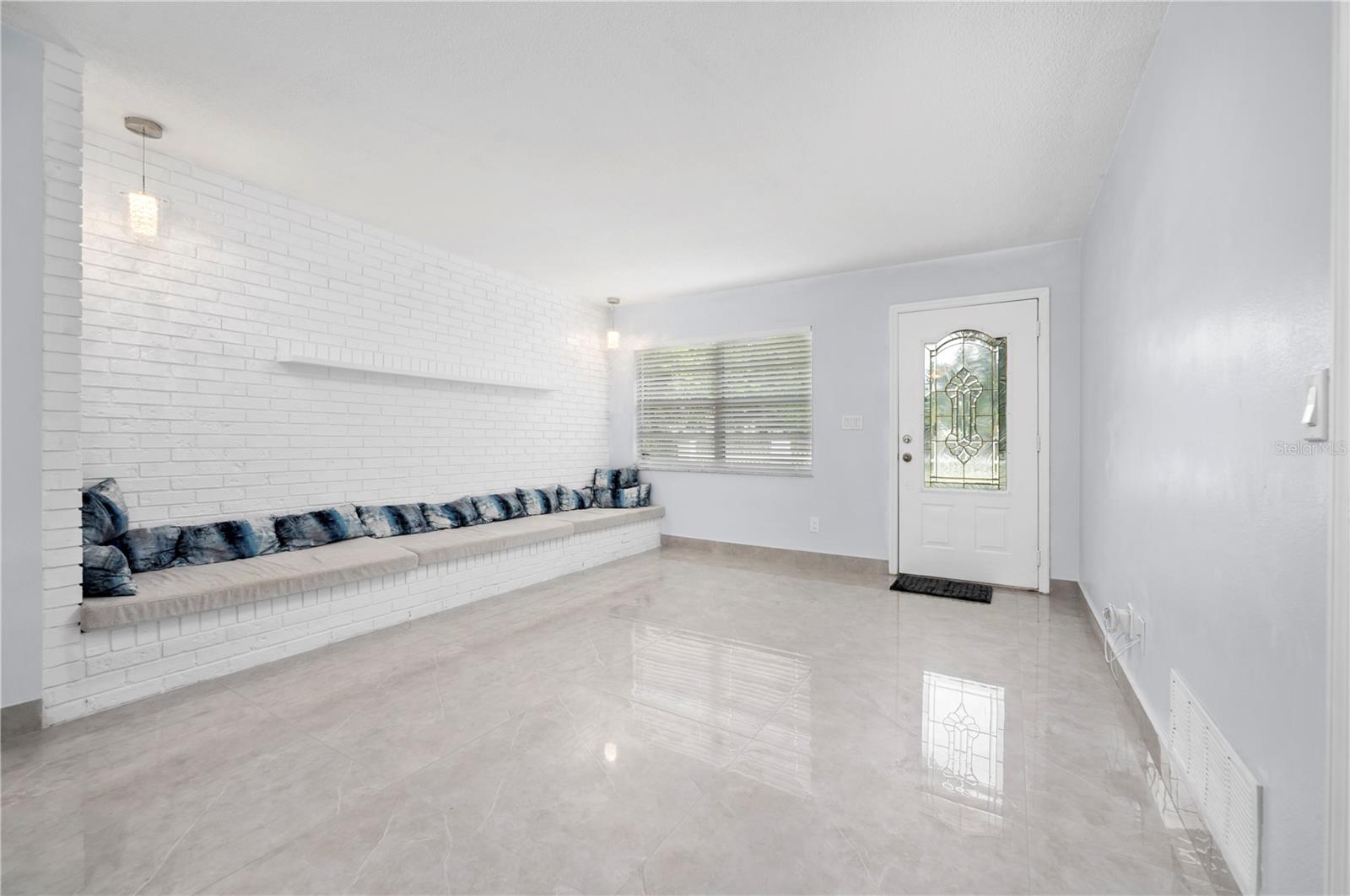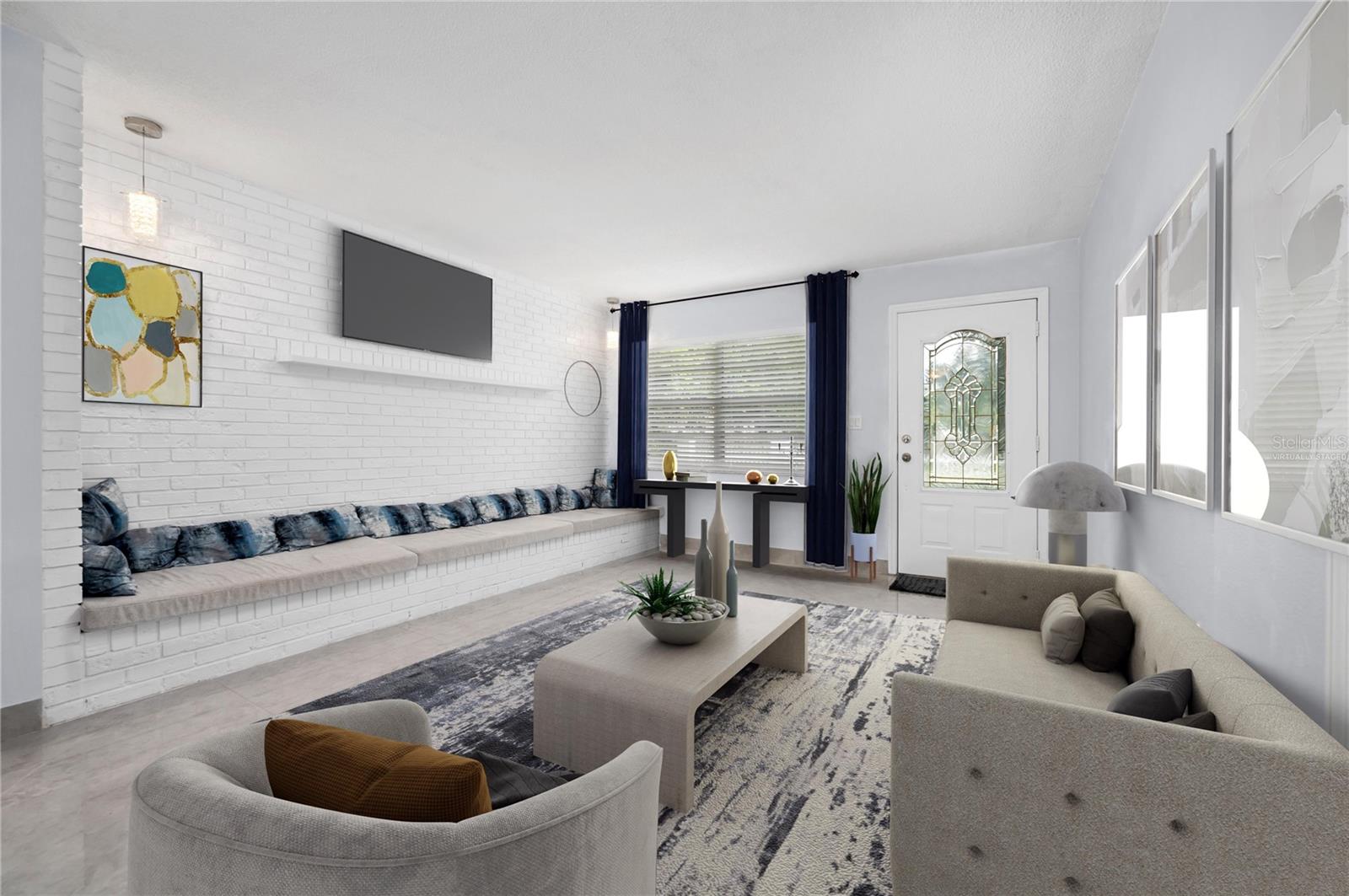 $1,437One or more photo(s) has been virtually staged. Welcome to this beautifully re-imagined concrete block 3-bedroom, 2-bath home in Daytona Beach, offering over 1,300 square feet of living space where contemporary design meets everyday ease and Florida living. Every detail has been updated for style and comfort, with a one-car garage for added convenience. Step inside to an open floor-plan that flows effortlessly—large windows allow natural light to pour in, and gorgeous tile flooring runs throughout for a clean, low-maintenance foundation. The living and dining rooms feature chic white-washed brick interior walls, adding character and texture while keeping things bright and fresh. The new kitchen is a standout: sleek stone countertops, custom backsplash, high-end stainless-steel appliances, and a peninsula counter for breakfast, casual dining, or hosting guests. Whether preparing a weekday breakfast or entertaining friends, this kitchen delivers. The generous primary suite provides a retreat-like vibe, complete with a deep walk-in closet (with solid built-in shelving) and an ensuite bath featuring a beautifully designed stand-up shower. Two large guest bedrooms both offer deep closets for ample storage. The guest bath invites with a stylish shower/tub combo—functional and elegant. From the dining area, large sliding doors open out to a spacious fenced-in backyard—a perfect Florida outdoor living space. It’s big enough for play, pets, or simply soaking up the sunshine in privacy - and even comes with papaya tree! Meanwhile your washer/dryer sit in the one-car garage, brand-new and ready to go. No HOA means more freedom and lower monthly overhead—ideal for home-buyers who value independence and location. 2016 Roof, 2025 water heater, 2022 appliances, 2024 AC.
